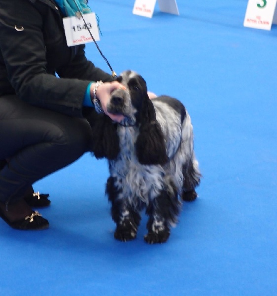 Excellente construction et ossature Excellente tête très féminine Beaux yeux de cocker malgré un clignotant clair Excellente pigmentation de la truffe Excellente encolure, épaule, aplombs et pieds La poitrine pourrait prendre de la largeur Excellent corps court et compact Excellente arrière main, bien angulée, cuisse musclée mais un peu plate Excellente couleur et qualité de fourrure Excellent mouvement et port de fouet Présentée en excellentes conditions d'exposition
